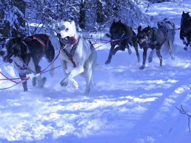 This is one of my favorite things to do in the winter. I love watching these dogs run, love the looks on their faces, the fierceness in their eyes. It reminds me of the way I feel when I’m trail running, carefree and unconcerned with the future. Running is one of the few times in my life when I’m living completely in the moment.