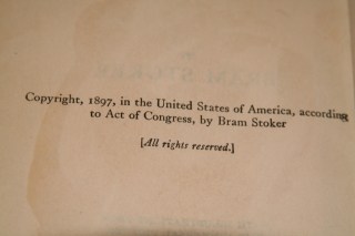Yes, an old copy of “Dracula” by Bram Stoker. It’s copyright dated from 1897, the original publishing date (May 26, 1897). And I got it for two bucks.