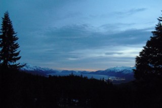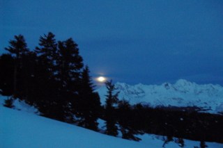 It looks like a space ship hovering above the mountains, eh? Imagine aliens watching me run down the mountains, snow up to my knees when I stumbled off the path. “Whatever is she doing?” they would wonder. “Is she being punished for something? Has she been banished by her tribe to this cold and empty place?”