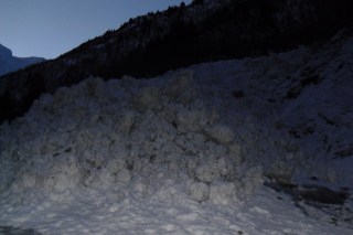 That might look like a harmless pile of snow bunched up by, say, a snowplow. Except we were in a mountain valley, miles from a road, and those boulder-sized hunks of snow were actually caused by an avalanche.