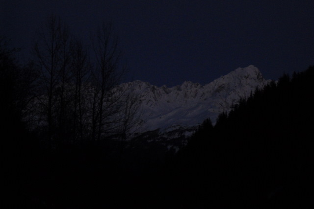 I could see the trail of the avalanche running down the mountain, flowing as straight and smooth as water. It was beautiful, in a primitive sort of way, and it also made me think of chances and risks and what might have happened had I been walking down the trail when the avalanche hit.