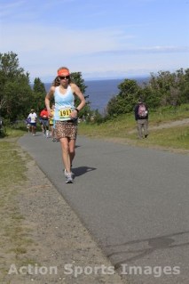 Race day morning was uneventful. I ate. I pooped. I put on my clothes and remembered my timing chip and we all got to the starting line in time. My sister and I seperated, since we run different paces, and when the gun went off I started off strong and ran with a running buddy I met at the Exit Glacier Race for the first couple of miles. We held a steady pace and chatted for a bit. Around mile four, I surged ahead. I felt great. My stride was fluid. I was on target for a 1:51/1:52. I was sure that I had it in the bag.