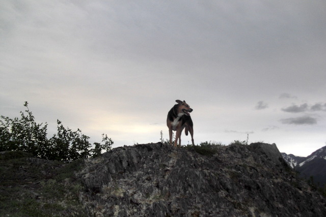 And last but not least, my fearless companion (imitating Rin-Tin-Tin, no doubt) on the ridge before the final push to the top.
