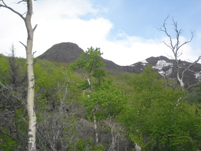 We encountered a moose right before mile 3. It was a trail moose, more skittish than city moose, and it ran off before I could snap a decent picture.
