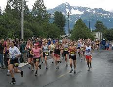 | Some of the top pack runners on a foggy and misty race day. Source: Anchorage Daily News. |