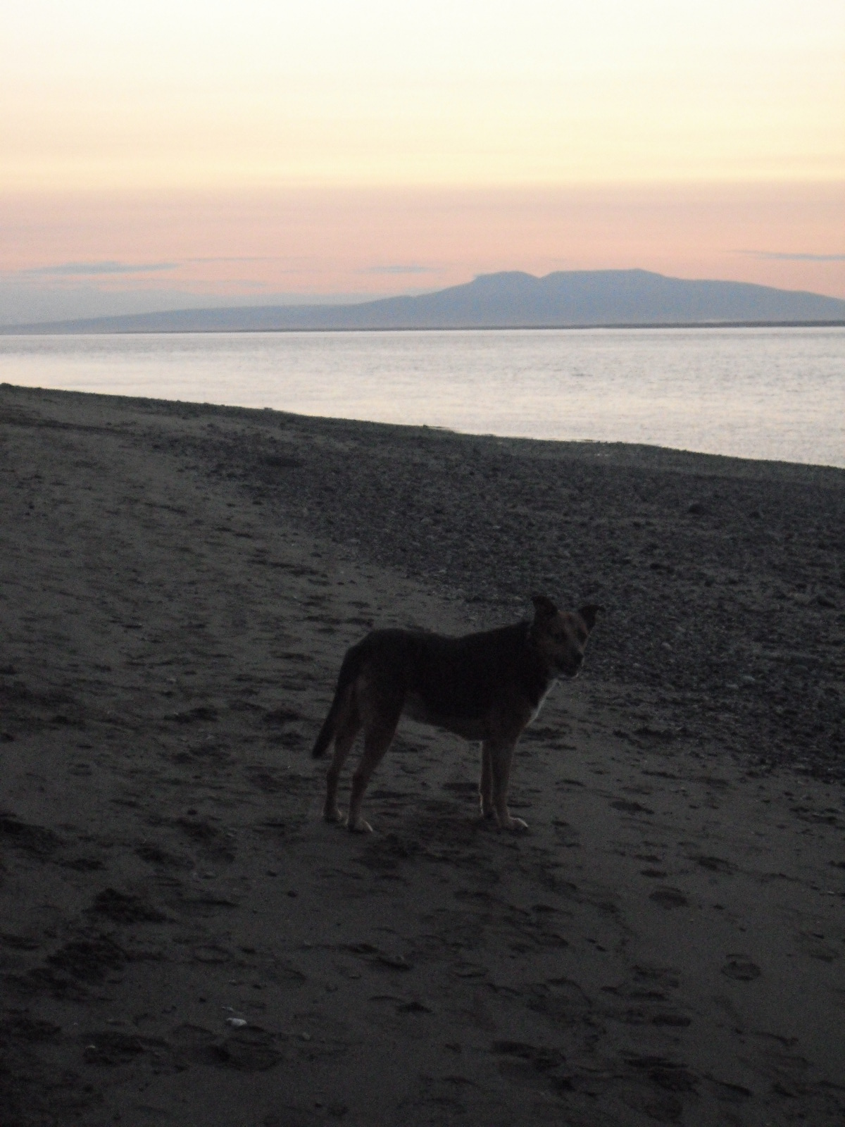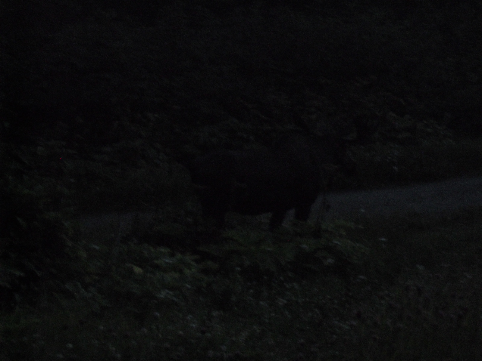 We went to the expo today but I forgot my camera, so no pics. But I do have a pic of a huge moose with a big rack that I saw on the Coastal Trail the other night. It’s pretty dark but it you look hard you may be able to see it, hee, hee.