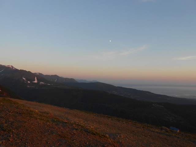 But oh, this weather! I feel positively infatuated. Monday I hiked Flattop with The Beebs. It was 76 degrees when we set out at 11 p.m. Beebs is part husky and because of her thick undercoat, doesn’t do well in the heat and so we took it slow. I love hiking in the evening twilight, love how still the air feels, and how hushed. Mostly I love the silver/lavender/grey shadows.