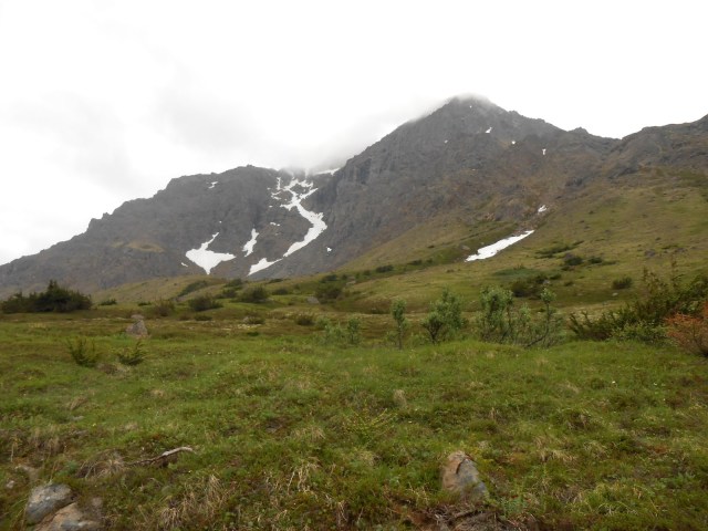 The trail levels off near the Glenn Alps trailhead, which leads to Flattop Peak in one direction and Powerline Pass in another.