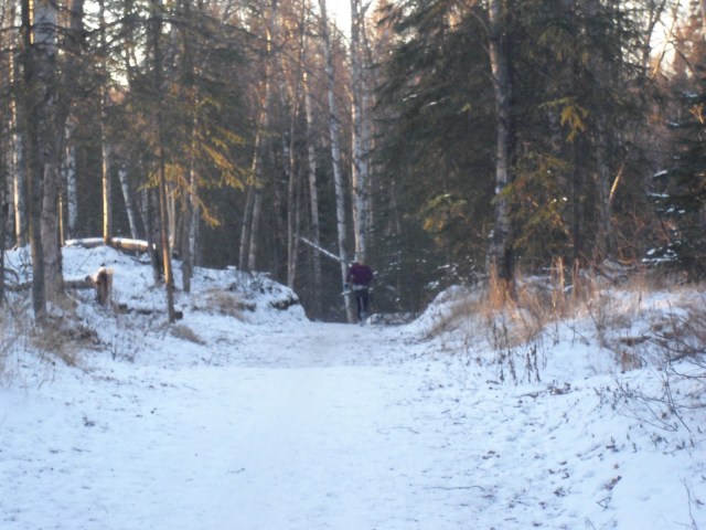 The trails were quiet, no one else around. I passed a runner or walker every mile or so and then, as the dark descended, no one else. I turned on my headlamp and that cheerful circle of light hugged around me and it was so cozy running through the trails at night, with the snow shadows and the silence and the night sky, the birch and spruce trees whispering small gasps as snow fell off their branches.