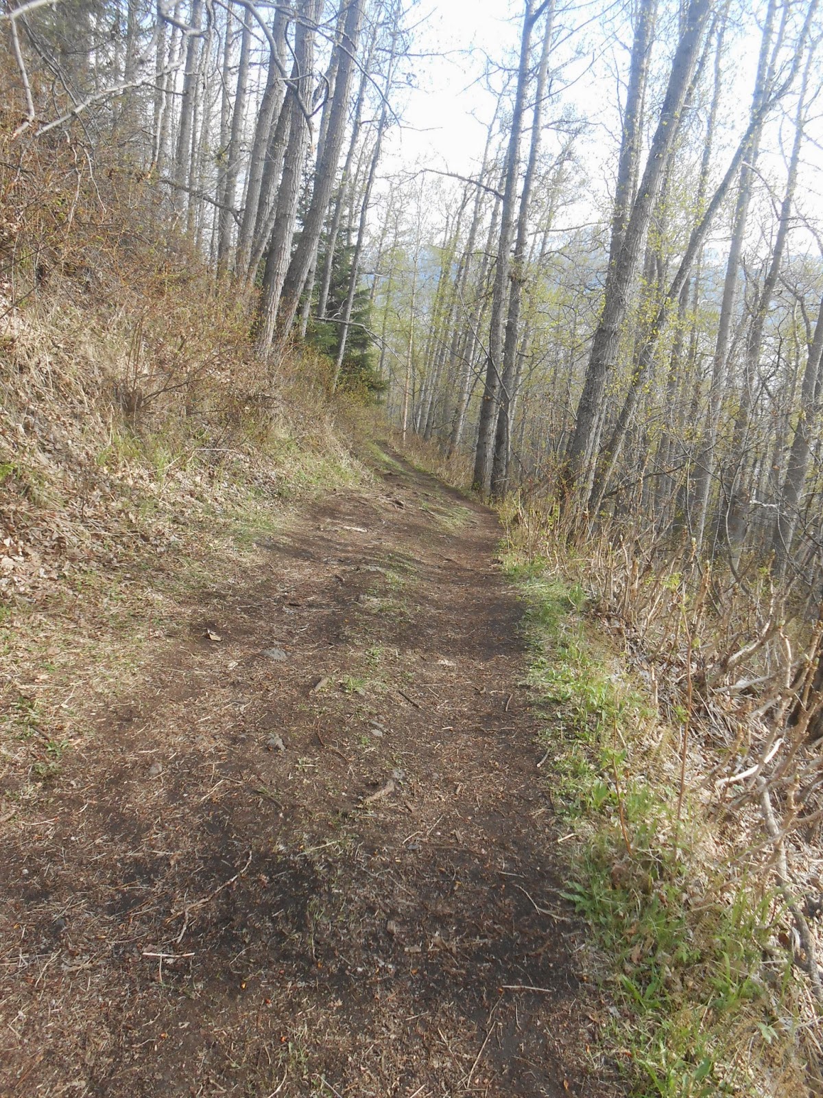 I warmed up on the mile of switchbacks back up, up, up the hill. By the time I reached the top, it was hailing. Hailing, for christ’s sake. I was miserable yet strangely exhilarated. Because everything was wet and the air smelled good and the footing was soft and no one else was around. I didn’t see anyone until I hit McHugh Creek, over four miles away. By then it had stopped raining, and my shorts were almost dry. And I passed, no lie, a guy wearing a puffy winter jacket, winter hat and gloves. And I had on shorts, hee, hee. He gaped at me as if I were crazy.