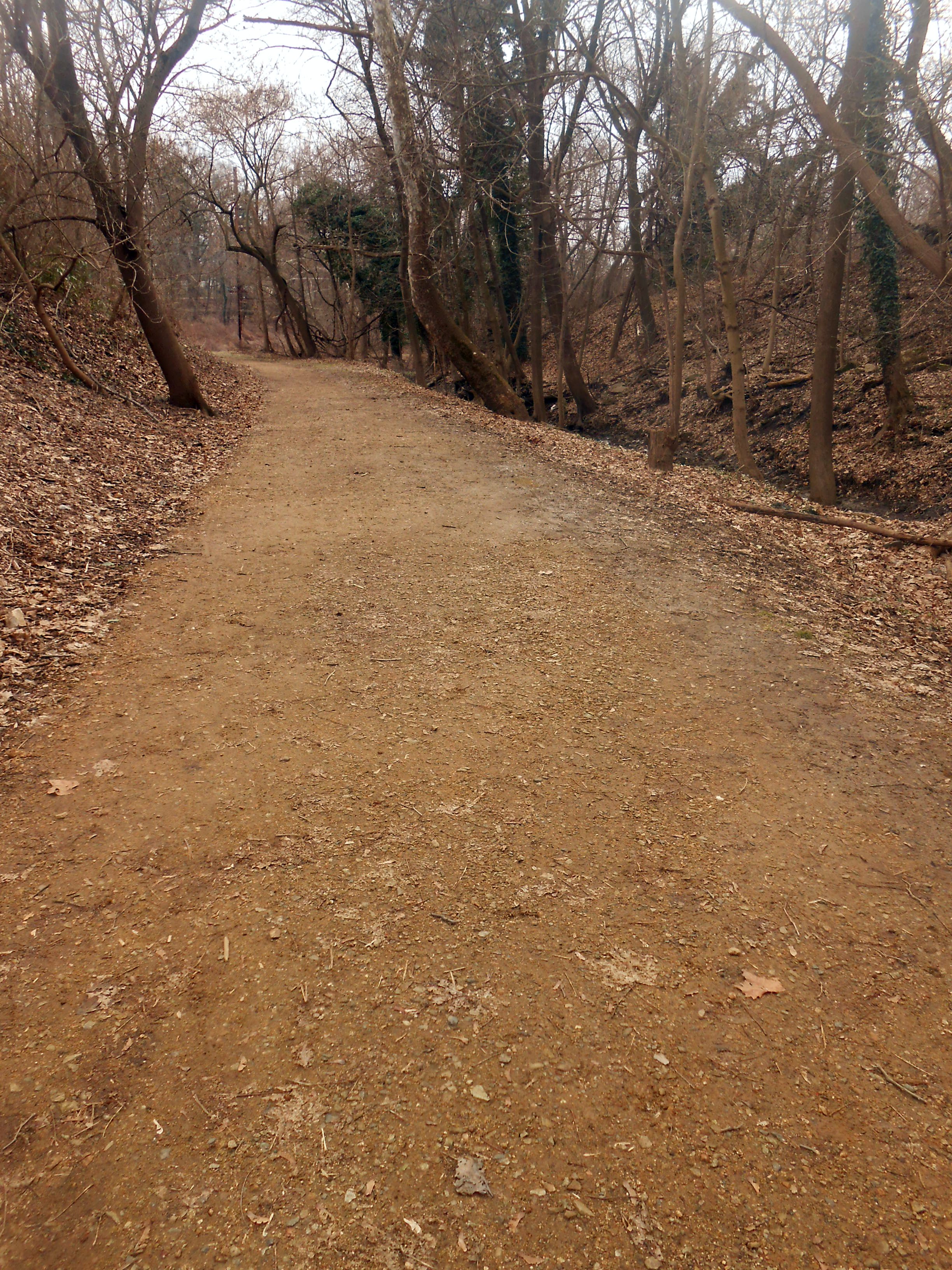 Since I’m running predominantly on pavement and since my legs are old, I’m trying like hell not to stress them out too much. I’ve been foam rolling like crazy. But there are trails; I just have to run quite a few miles of roads and sidewalks to get to them.