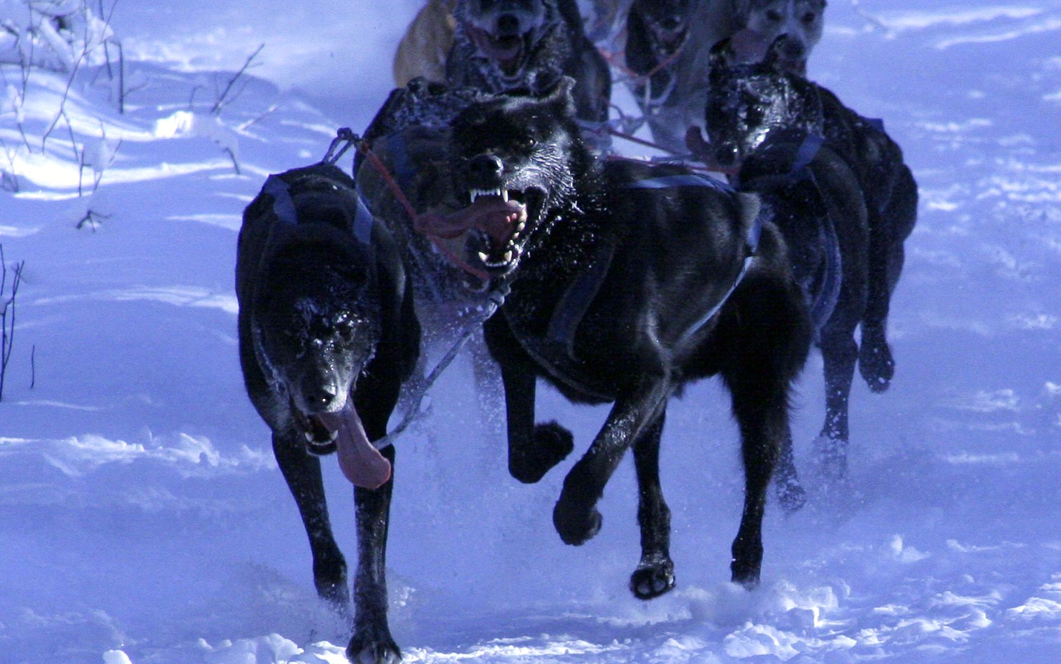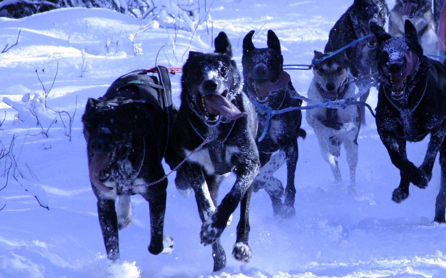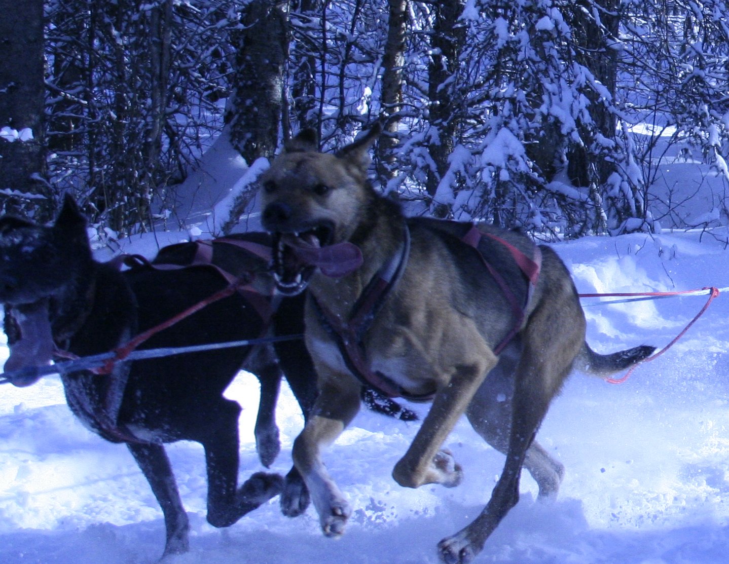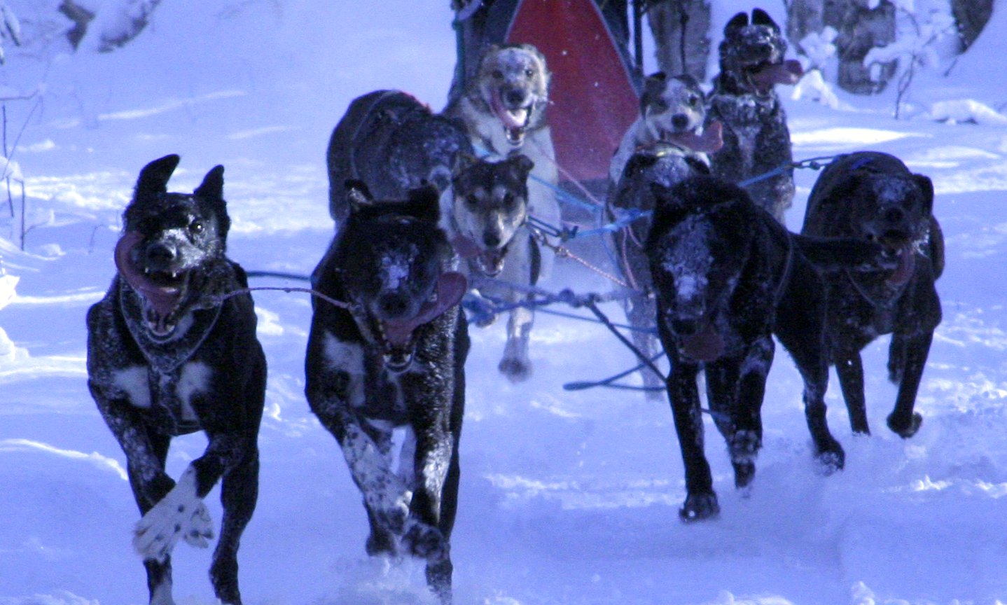 Then we waited. We stood in ankle-deep snow and waited for the soft thump of sled runners over the snow. We waited for the dark movement of dogs ahead and then that sudden motion as a team crested the curve and ran towards us.